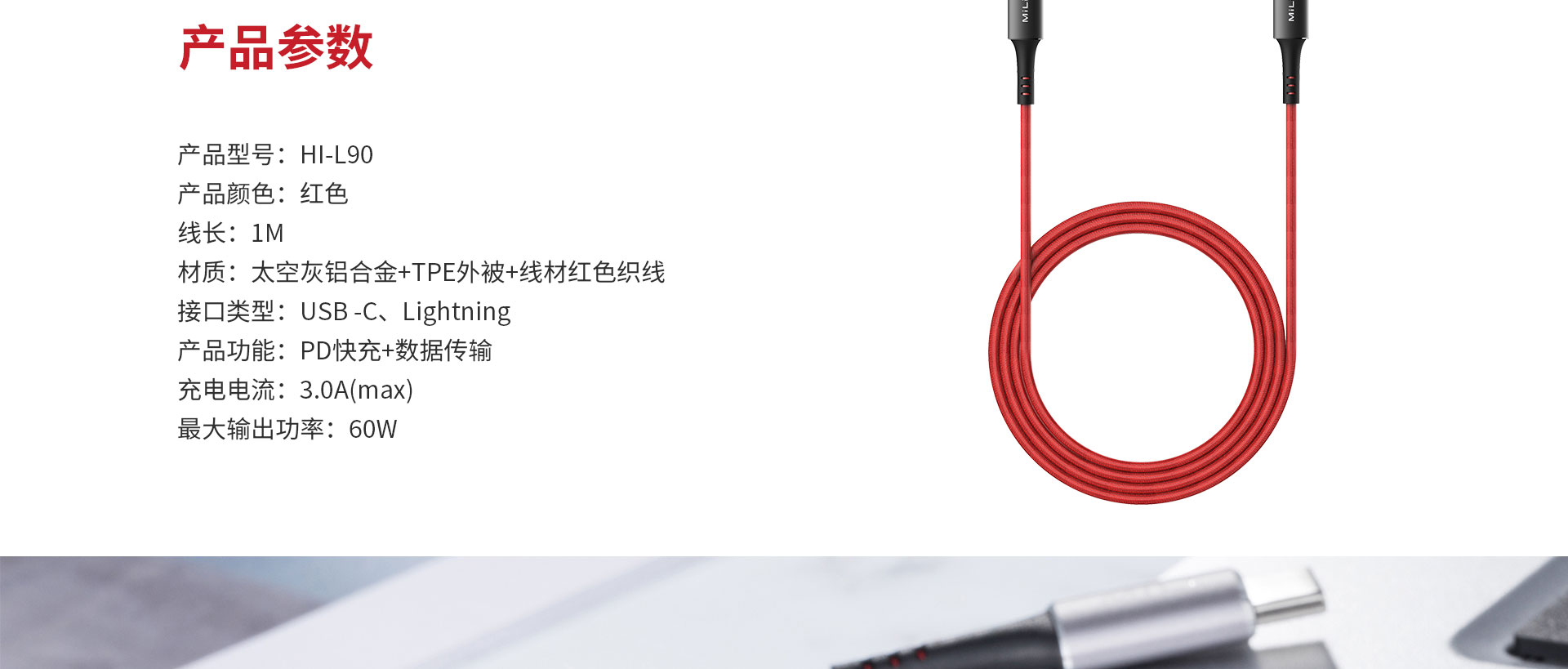 MiLi Braided Type-C to Lightning Cable 快充數(shù)據(jù)線