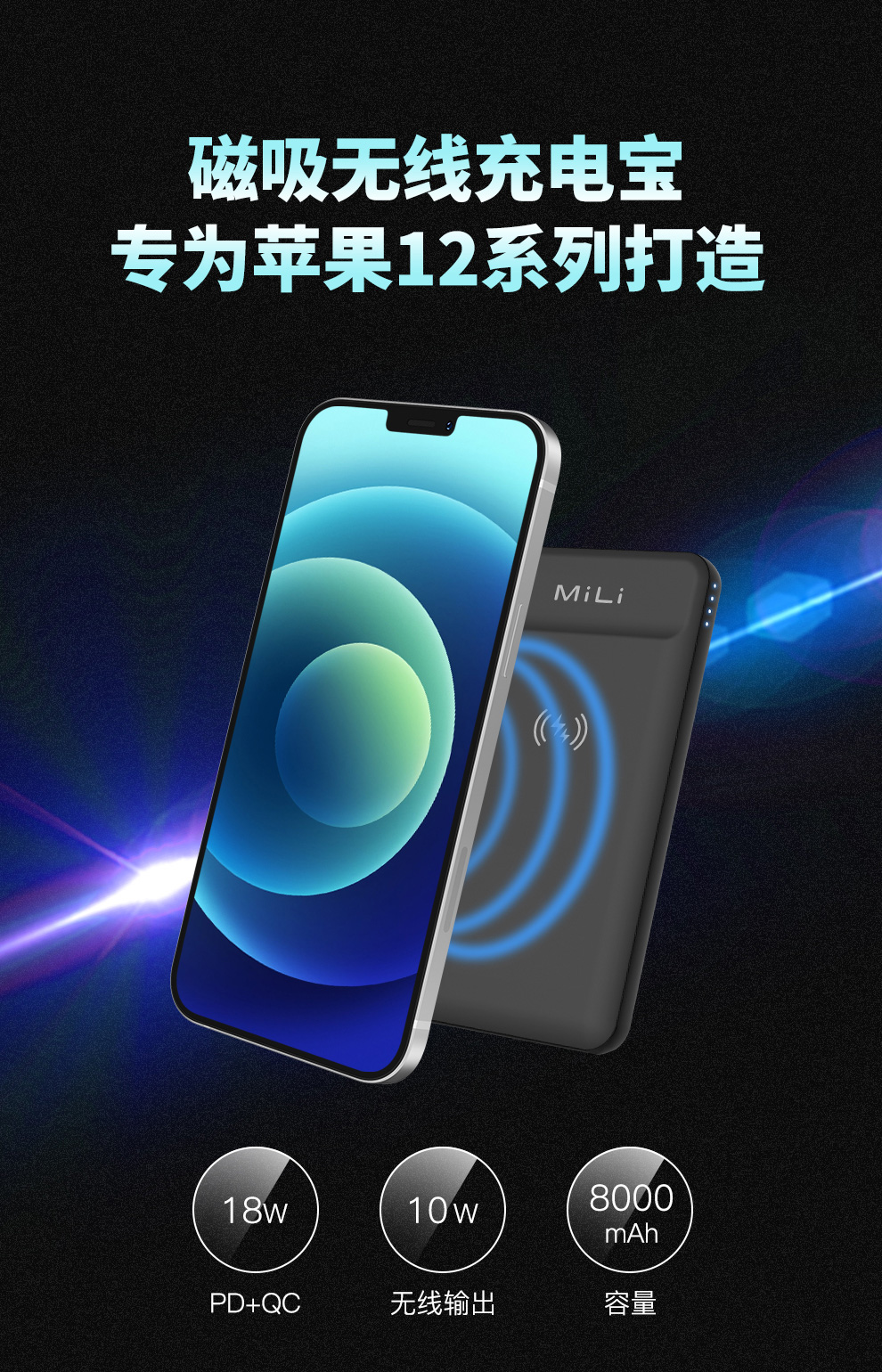 磁吸無(wú)線充電寶,專為蘋(píng)果12系列打造